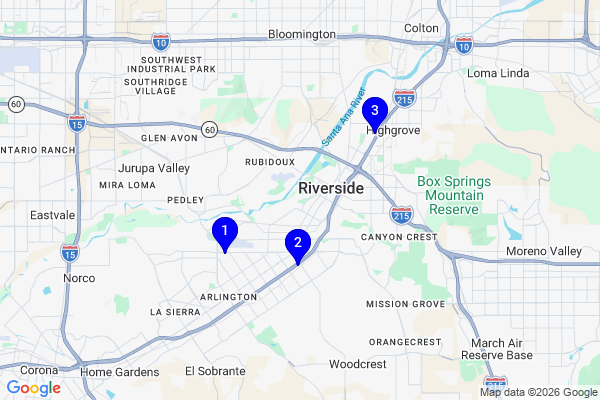Three Riverside locations serve the city and its surrounding neighborhoods. You can rent a unit on West La Cadena Drive in Riverside, near the 91 Freeway, making it a quick stop for commuters heading toward Corona or Norco. Our Arlington Avenue facility sits in the heart of Riverside, close to Van Buren Boulevard and convenient for residents of the Arlington and Woodcrest communities. For those on the east side of the city, our Indiana Avenue storage location offers easy access near the 60 Freeway.